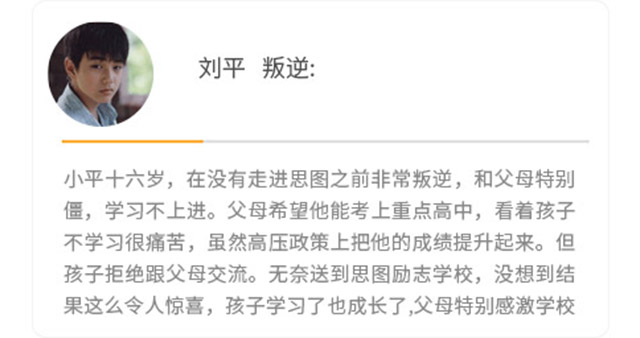 易美软件科技有限公司旗下项目——“思图励志教育学校”;思图励志教育学校是一家专业针对10岁-18岁青春期孩子“不听话、不上学、离不开手机、社交障碍、自私叛逆、早熟早恋、内向孤僻、亲情淡漠、盲目消费、打骂父母、懒散任性、离家出走”等存在青春期障碍的青少年进行心理辅导、思想矫正、行为训练、体能锻炼、价值观塑造、学习动力激发的综合类青少年教育基地。